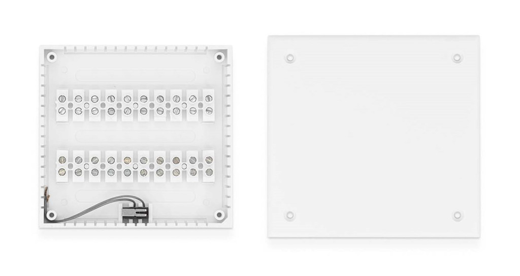 Montážní krabice Asita pod omítku s 2x10 šroubovacími svorkami . Tamper ochrana řešena mikrospínačem.