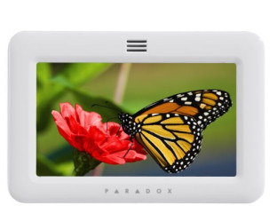 Barevná LCD sběrnicová klávesnice s úhlopříčkou 18cm, dotykový 7/ širokoúhlý displej s vysokým rozlišení 800x480, programovatelné názvy pro zóny, podsystémy, uživatelé a PGM výstupy, slot na externí paměťovou SD kartu pro nahrávání vlastních témat a zvuk, fotografií pro použití s funkcí prezentace fotek a pro modernizaci firmware. Uživatelsky intuitivní ovládání systému zabezpečení pomocí klávesnice TM70 se stává hračkou. Vestavěný senzor pro zobrazení vnitřní teploty a vlhkosti, možnost připojení externího teplotního senzoru (DNE-TMP) pro monitoring např. venkovní teploty.