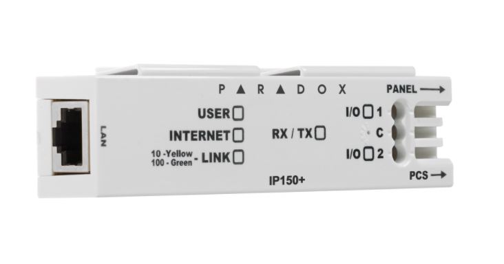 Komunikační modul IP150+MQ pro internet se používá k hlášení a vzdálenému připojení k systémům Paradox přes internet. Hlášení do CMS centrální stanice je možné prostřednictvím přijímače/převodníku Paradox IPC10. IP150+ se k systému připojuje vzdáleně pomocí aplikace BlueEye, PC softwaru a umožňuje vzdálený upgrade systému. Lze jej připojit pomocí ethernetového kabelu. IP150+ lze také upgradovat vzdáleně. IP150+ může také odesílat systémové události e-mailem.