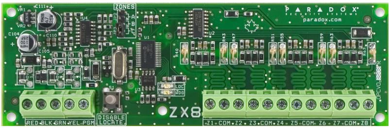 Sběrnicový modul rozšíření systému o 8 zón. Pokud tento modul připojíte k ústřednám Spectra SP5500/6000/7000/4000, rozšíříte systém o 8 zón. Pokud tento modul připojíte k ústředně EVOHD/192/48/96, podporuje tento modul funkci ATZ a rošíříte systém o 16 zón. Modul lze připojit kamkoliv na sběrnici a má plně programovatelné zóny. Kompatibilní je se všemi ústřednami Spectra SP, Magellan MG5050/5000 a Digiplex 848/NE96 EVOHD/192/48/96.