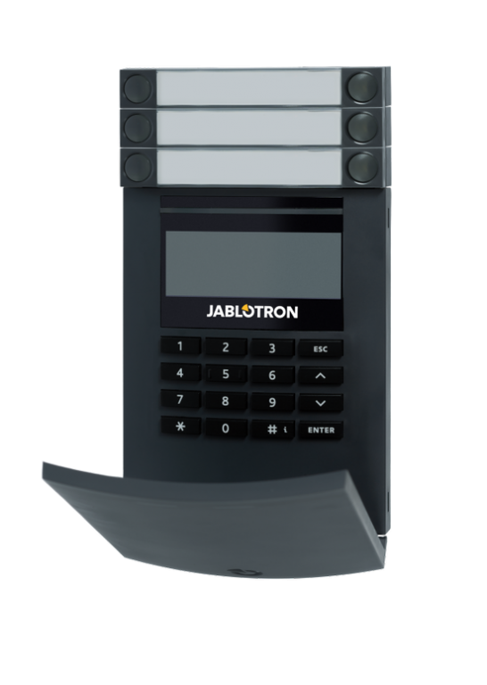 Sběrnicová LCD klávesnice s RFID čtečkou Jablotron JA-114E - antracitový je přístupový modul s LCD displejem, ovládacími klávesami a čtečkou RFID pro ovládání zabezpečovacího systému. Obsahuje jeden ovládací segment, a pokud je potřeba, může být vybaven až 20 ovládacími segmenty JA-192E Umožňuje jednoduché ovládání zabezpečovacího systému pomocí segmentů. Komunikuje prostřednictvím sběrnice a je z ní napájen. Modul má funkci úspory energie během výpadku napájení. Nabídka menu umožňuje pohodlné ovládání a správu sekcí, zón a zpráv o událostech. Modul je adresovatelný a obsazuje v zabezpečovacím systému jednu pozici.