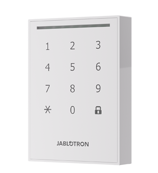 Sběrnicový přístupový modul s klávesnicí a RFID Jablotron JA-121E - bílý je přístupový modul s klávesnicí a RFID čtečkou karet pro ovládání zabezpečovacího systému.Komunikuje prostřednictvím sběrnice a je z ní napájen. Duální technologie čtení medií RFID 125kHz a MIFARE 13,56MHz, stupeň krytí IP 55, rozměry 96x67x13,5mm.