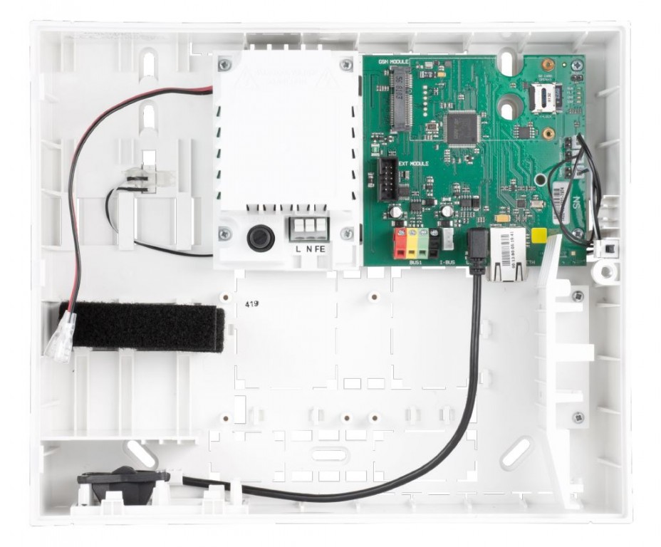 Ústředna Jablotron JA-103KRY s GSM/GPRS, LAN komunikátorem a bezdrátovým modulem, v plastovém krytu se zdrojem, prostor pro Aku 2,6Ah.