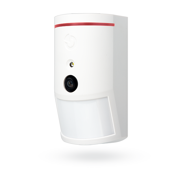 Bezdrátový PIR detektor pohybu s kamerou Jablotron Ja-160PC (90). Detekční pokrytí je 90°/12 m. Rozlišení snímků: LQ 320*240; HQ 640*480 bodů.