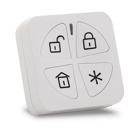 Obousměrně komunikující čtyřtlačítková klíčenka Panda v bílém provedení.
