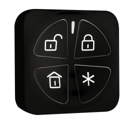 Obousměrně komunikující čtyřtlačítková klíčenka Panda v černém provedení.