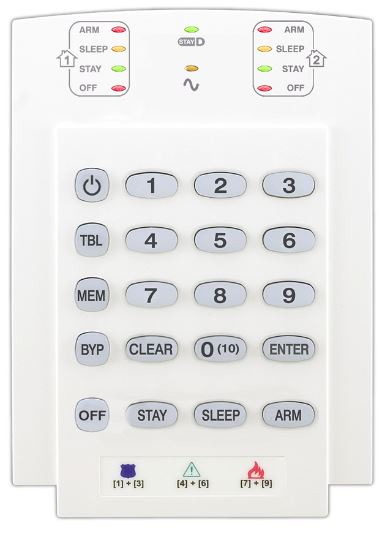10-zónová drátová klávesnice, LED indikace, kompatibilní s ES55/65 a řadou ústředen Spectra SP a MG, podpora systému StayD, jendna klávesnicové zóna