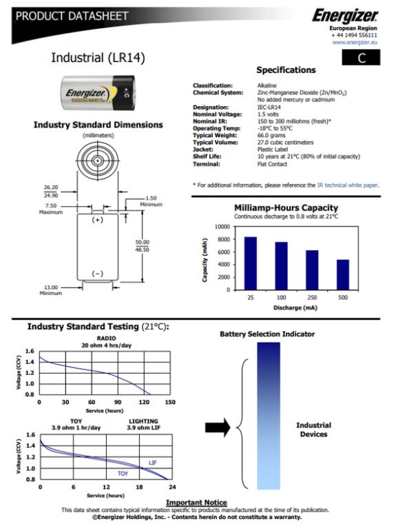 Alkalická baterie Energizer 1,5V typ C,R14,nenabíjecí