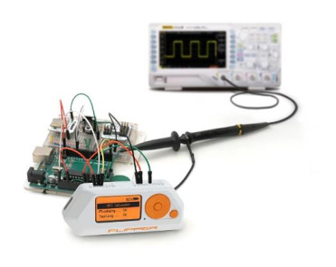 Vestavěné napájecí piny 5V a 3.3V. Ovládání z vestavěných tlačítek a displeje, není vyžadován PC.