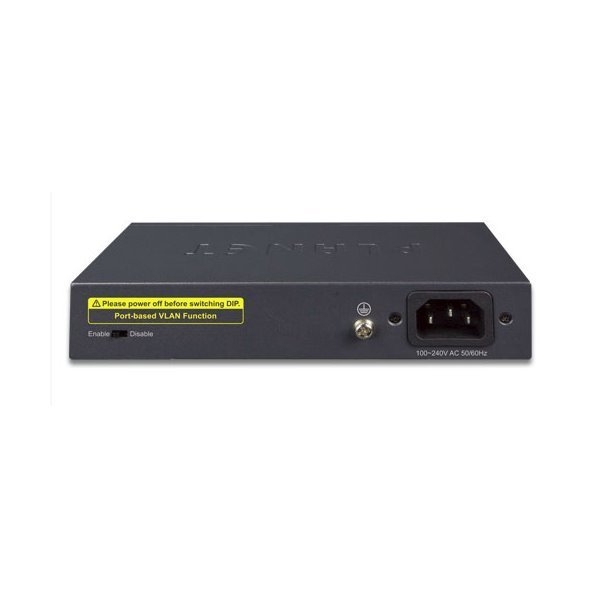8-mi portový Gigabitový switch Planet v kovové skříni bez ventilátoru. Autodetekce rychlosti a typu kabelu. Interní napájecí zdroj, konektor na 230VAC, příkon 2,4W, rozměry: 168x93x32 mm.