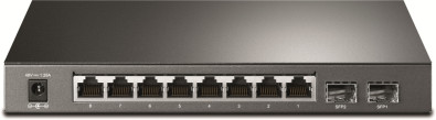 10 portový řízený PoE switch TP-link T1500G-10PS(TL-SG2210P) s možností napájet až 8 IP zařízení současně do maximálního výkonu 53W s výkonem na jeden port maximálně 30W, v případě zapojení všech portů 6,625W. IP zařízení lze napájet až do 100m od switche pro UTP Cat5E, Cat6E. Síťové připojení je zajištěno pomocí portu RJ45 (1Gbps) pro metalické rozvody, při využití optických rozvodů s SFP moduly rovněž 1Gbps. Napájení je 230V AC se spotřebou do 64,89W. Rozměry jsou 209 x 126 x 26mm. Provozní teplota 0°C až do +40°C.