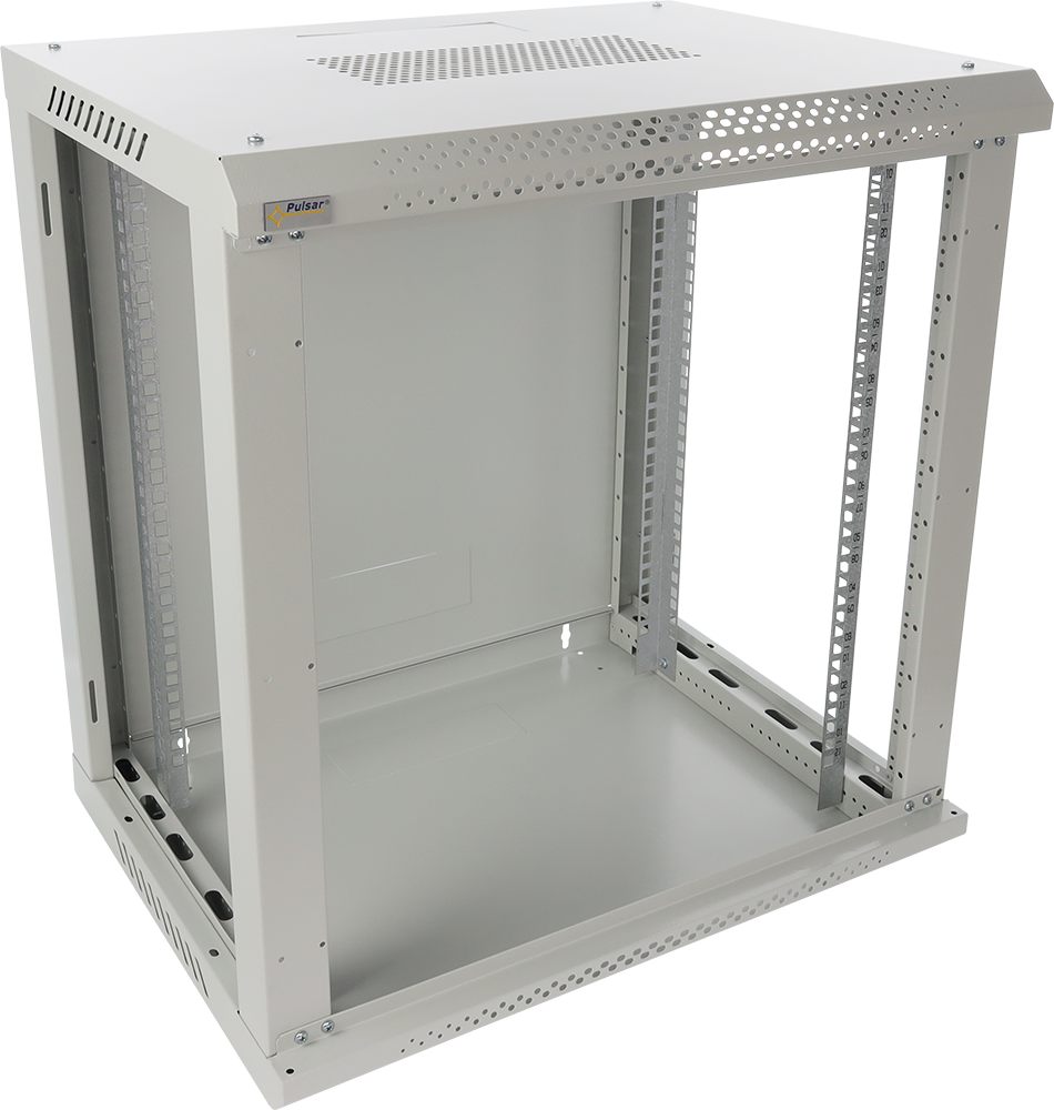 12U rozložený nástěnný rozvaděč (Rack) RWA1264-G od výrobce Pulsar o rozměrech 600 x 635 x 450 mm (Š x V x H), jedná se o 19" standard s maximální nosností 50 kg. Rozvaděč je určený k zavěšení na stěnu. Rack disponuje prosklenými dveřmi s možností prohození směru otevírání - pravá nebo levá. Hmotnost racku je 16,4 kg. Vrchní díl racku je navržený tak, aby byl umožněný snadnější odvod tepla. Barva oceli je RAL7035 (šedá). Rack disponuje kabelovými kanály v horním a spodním panelu (175 x 58 mm). Nechybí ani možnost montáže koleček. Ochrana IP20, Provozní teplota -10 °C až 40 °C.