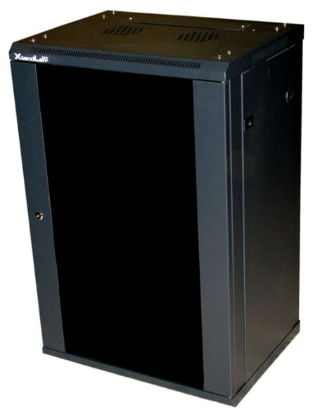 PRODEJ UKONČEN! 18U nástěnný rozvaděč (Rack)WS-18U-66-BL od výrobce XtendLan o rozměrech 900 x 600 x 600 mm (V x Š x H), jedná se o 19“ standard s maximální nosností 60kg. Rozvaděč je určený k zavěšení na stěnu, dále nabízí stupeň krytí IP20. Rack disponuje zamykatelnými dveřmi s možností prohození směru otevírání (2 klíče součástí balení). Přední dveře jsou skleněné – kouřové sklo. Vrchní díl racku je navržený tak, aby byl umožněný snadnější odvod tepla. V černém barevném provedení - RAL 9004.