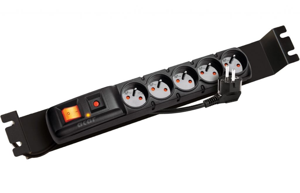 Napájecí panel do racku ACAR F5 FA se zásuvkami 5x 230V.Velikost 1U. Délka kabelu 3m. Tento model je dodáván včetně vany, která umožňují instalaci do 19" lišt. Rozměry: 330 × 54 × 55 mm.