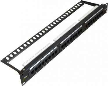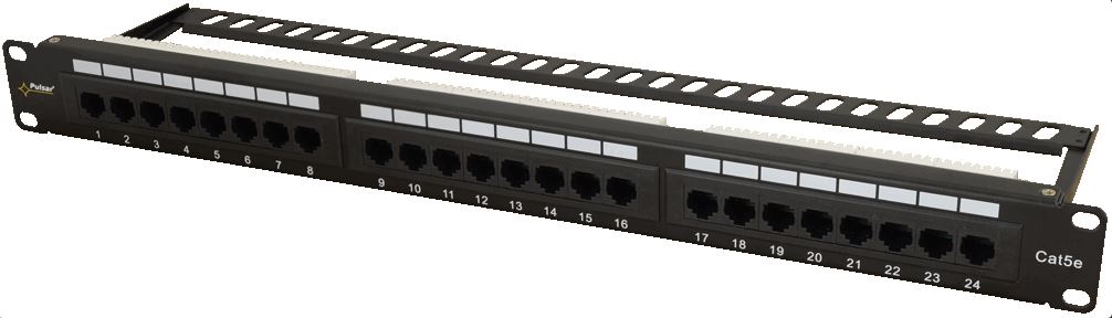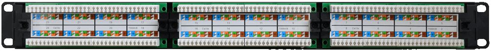Patch panel 24 portů UTP CAT5e. 24x RJ45 pro 19" racky. LSA vertikální konektor pro UTP kabel Cat 5e.