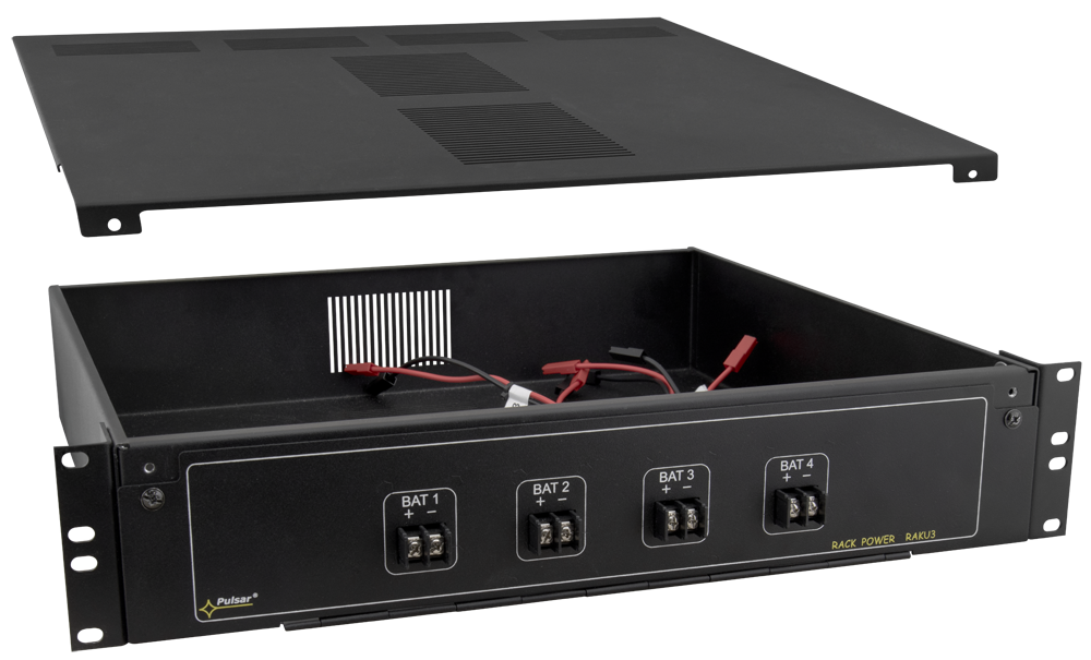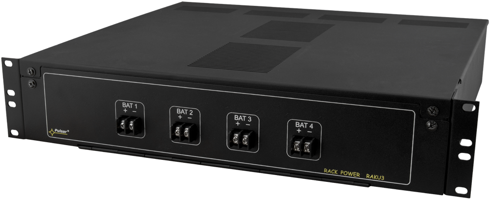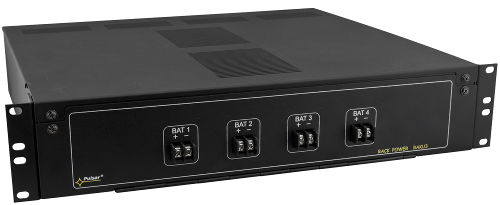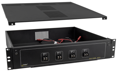 Kryt RAKU3 na akumulátory do skříní RACK 19” je určen k nainstalování akumulátorů 4 x 17Ah a 4 x 7Ah. Má čtyři spoje. BAT1 - BAT4 pro napěťově-kapacitní konfiguraci akumulátorů nacházejících se vevnitř krytu. Napájecí vstup: 20A/60VDC. Prostor pro akumulátor: 4 x 7Ah / 4 x 17Ah. Montážní rozměry: 19" x 2U x 410mm. Rozměry: 435 x 88 x 410mm. Provedení: plech DC01, 1.2mm, RAL9005 (černá). Stupeň krytí: IP20