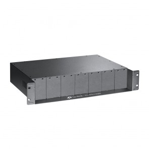 14-slotové rackové šasi je speciálně určeno pro osazení 14 média konvertorů TP-LINK při zajištění centrálního napájení, úspory místa a napájecích kabelů. Zařízení disponuje dvěma chladícími větráky a lze jej osadit redundantním napájecím zdrojem TL-MCRP100. Velikost 19" rack standard, 2U (482x309x86mm).