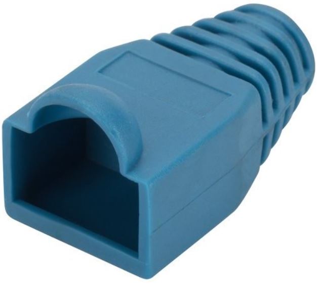 Ochranný kryt zabraňuje zalomení vodičů a vniknutí prachu uvnitř síťového kabelu v místě, kde je k němu připojen konektor. S použitím ochranné krytky vytváří konektor dojem profesionální instalace. Modré provedení.