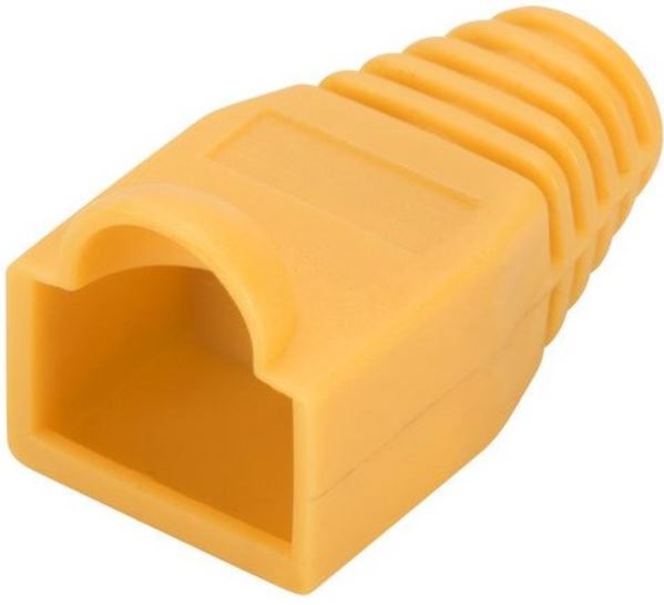 Ochranný kryt zabraňuje zalomení vodičů a vniknutí prachu uvnitř síťového kabelu v místě, kde je k němu připojen konektor. S použitím ochranné krytky vytváří konektor dojem profesionální instalace. Žluté provedení.
