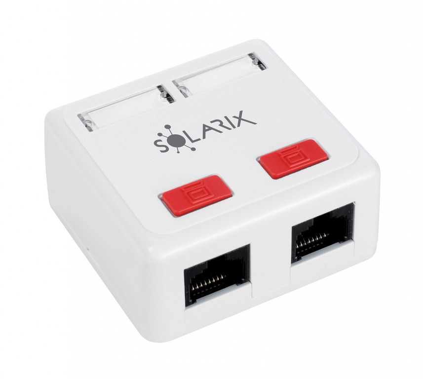 Zásuvka Solarix CAT5E UTP 2 x RJ45 na omítku bílá SX288-5E-UTP-WH