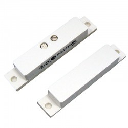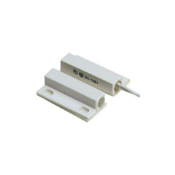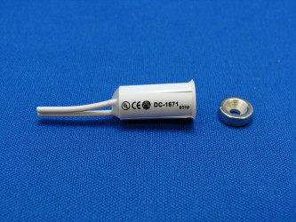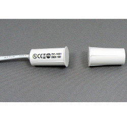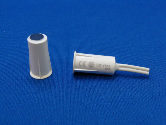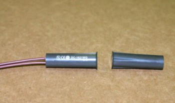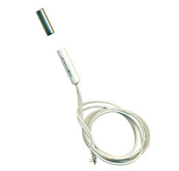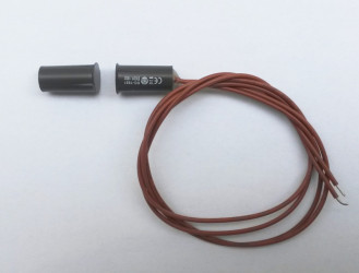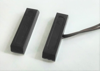 PRODEJ UKONČEN! Zápustný magnetický hnědý kontakt Aleph, pracovní vzdálenost 28 mm, délka přívodních vodičů, 450 mm, počet vodičů 2, rozměry (š×v×h) kontakt i magnet 11 x 32 mm