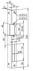 Čelní plech - 02140-01/pozink pro el.otvírače effeff a FAB. Rozměry 250x25x3 mm (v x š x h)