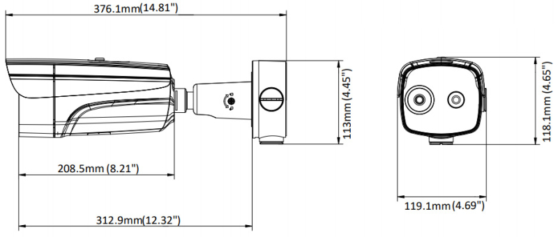 Kamera je vybavena snímačem CMOS 1/2.7" s Ultra vysokou citlivostí 0,0089lux a maximálním rozlišením 384 x 288 při 25fps pro termální spektrum a pro optické spektrum 2688 x 1520 při 25fps.