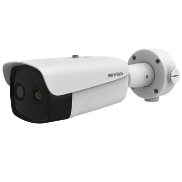 Termální bi-spektrální IP venkovní Bullet kamera Hikvision DS-2TD2637B-10/P s monifokálními objektivy a ohniskovými vzdálenostmi 9,7mm pro termální objektiv a 4mm pro optický objektiv.
