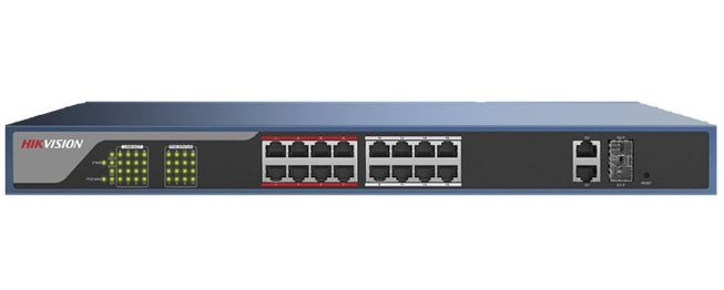 PRODEJ UKONČEN! 18 portový řízený PoE switch Hikvision DS-3E1318P-E s možností napájet až 16 IP zařízení současně do maximálního výkonu 230W s výkonem na jeden port maximálně 30W, v případě zapojení všech portů 14,37W. IP zařízení lze napájet do 100 metrů od switche, při přepnutí do Extend modu lze rozšířit pracovní vzdálenost až na 250 metrů, avšak při rychlosti 10Mbps pro kabeláž UTP Cat5E, Cat6E. Dále tento model disponuje ochranou proti přepětí do 6kV pro PoE porty a také SFP porty. Síťové připojení je zajištěno pomocí portu RJ45 (1Gbps) pro metalické rozvody, při využití optických rozvodů s SFP moduly rovněž 1Gbps. Napájení je 230V AC se spotřebou do 230W. Provozní teplota 0°C až do +40°C.