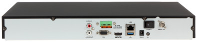Tento model nabízí i řadu SMART funkcí, mezi které patří - podpora události VCA (Video Content Analytics) s vícenásobným spojováním linek a narušením SMART vyhledávání pro vybranou oblast ve videu a inteligentní přehrávání pro zvýšení efektivity přehrávání, překrytí informací POS v živém zobrazení a přehrávání, spuštění záznamu a alarmu POS. Tento model nabízí i řadu funkcí jako jsou například detekce pohybu, vyhledávání alarmu, detekce překročení čáry a mnoho dalších. Síťové připojení o rychlosti 1000Mbps zajišťuje dostatečnou rychlost pro tok dat ze záznamového do sítě. Video výstup je umožněn konektory 1x VGA (2MPx), 1x CVBS a 1x HDMI při rozlišení 4K, nechybí ani 2x USB - 1x 2.0, 1x 3.0, dále alarmové vstupy, výstupy pro připojení dalších technologií. Napájení videorekordéru je 12V DC. Provozní teplota -10°C až do +55°C.