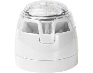 CWSS-WR-W5, EN54-3 bílá siréna s doplňkovou optickou signalizací, bílé plexisklo, červené záblesky, IP65. EN 54-23 Classes W+C (wall+ceiling)