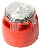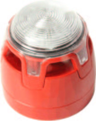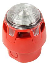 CWSS-RR-W3, EN54-3 červená siréna s doplňkovou optickou signalizací, bílé plexisklo, červené záblesky, IP65. EN 54-23 Class O ("open class")
