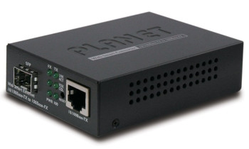 3 portový Konvektor Planet Technology Corporation GT-1205A s 2x SFP porty a možností připojení 1 IP zařízení, dosah 100m, UTP Cat5E, Cat6E. SFP (1Gbps), napájení je 5V DC se spotřebou do 10W.