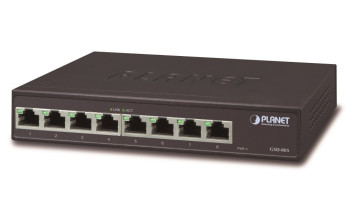 Planet GSD-908HP PoE switch 9x1000Base-T, 8x PoE IEEE 802.3at, 100W, ext.zdroj, kov, fanless