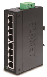 8 portový switch PLANET ISW-801T s možností montáže na DIN lištu, nebo přímo na zeď. Dále tento model disponuje ochranou proti přepětí ESD do 6kV DC. Síťové připojení je zajištěno pomocí portu RJ45 (10...