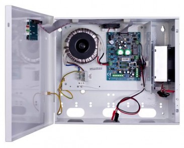 Vstupní napětí: 230VAC, 50Hz, 0,55A max. Výstupní napětí: 13,8VDC/5A Prostor pro akumulátor: 17Ah/12V Ochrana: SCP, OLP, OVP, UVP, tampery (otevření a sejmutí skříně) Dodatečné funkce: kontrola práce, technické výstupy (výpadek sítě, porucha), displej a ovládací klávesy Rozměry: š=350 v=277 h=160+8 mm Poznámky: skříň pro povrchovou montáž, zajištění – šrouby