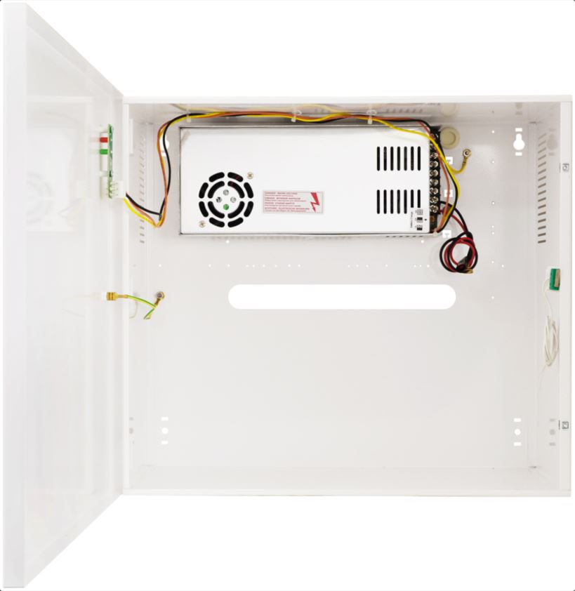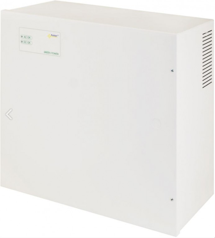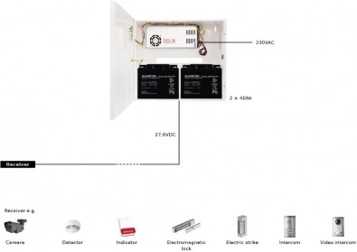 PRODEJ UKONČEN! DOPRODEJ - Záložní zdroj 27,6VDC/10A s prostorem pro 2x 40Ah akumulátor. Vstupní napětí 176÷264VAC/50Hz, nastavitelný dobíjecí proud akumulátoru 1A/2A/4A, účinnost 85%. Ochrany SCP, OVP, OLP, UVP, OHP*, tamper. Rozměry: 420 x 373 x 183+14 mm. Plechová skříň pro povrchovou montáž, zajištění pomocí šroubů, možná montáž zámku..