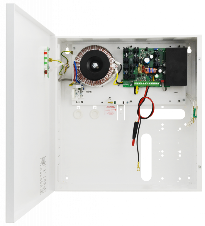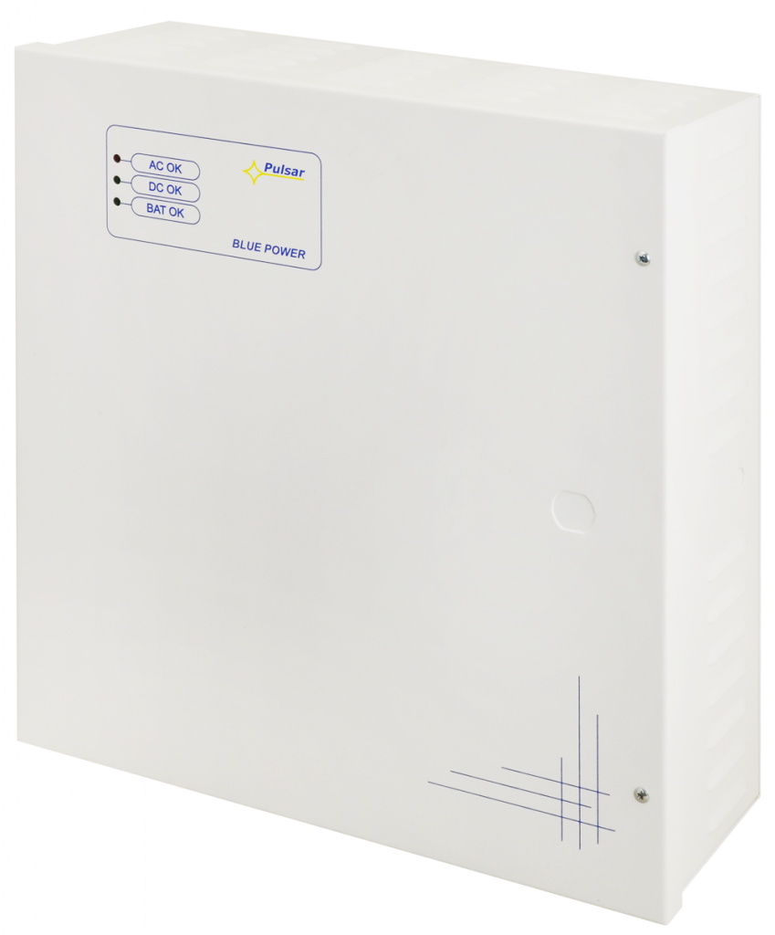 PRODEJ UKONČEN! DOPRODEJ - Zálohovaný napájecí zdroj PSBS5012C. Vstupní napětí: AC 230V, 50Hz 0.61A max Výstupní napětí: 5A/13.8VDC Prostor pro akumulátor: 17Ah/12V Ochrana: SCP, OLP, UVP, sabotážní (otevření skříně, sejmutí ze stěny) Dodatečné funkce: technické výstupy (výpadek sítě, porucha) Rozměry: W=350 H=277 D=160+8 mm Poznámky: skříň pro povrchovou montáž, zajištění – šrouby (volitelně: zámek)