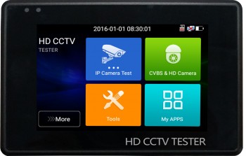 4" dotykový tester pro IP a Analogové kamery až do rozlišení 8MPx (8K), H.264/H265, PoE, Wi-Fi. ONVIF. Popruh na ruku.