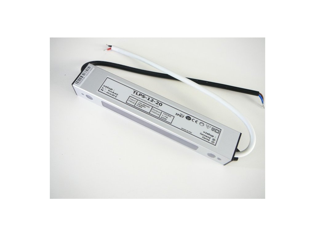 PRODEJ UKONČEN! Napájecí zdroj TLPS-12-20 pro LED pásky. Výkon: 20W, voděodolný spínaný zdroj (trafo) pro LED pásky. Vlastnosti: tepelná pojistka, pojistka proti zkratu (po odstranění zkratu je opět plně funkční), pojistka proti přetížení. Vstupní napětí: 170 - 230V AC. Výstupní napětí: 12V DC/1.7A. Hmotnost: 200g. Krytí: IP67. Rozměry: 180×30×20mm.