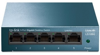 5 portový switch TP-LINK LS105G. Síťové připojení je zajištěno pomocí portu RJ45 (1Gbps). Napájení je 5V DC se spotřebou do 2.776W. Rozměry jsou 99.8 x 98 x 25 mm. Provozní teplota 0°C až do +.40°C.