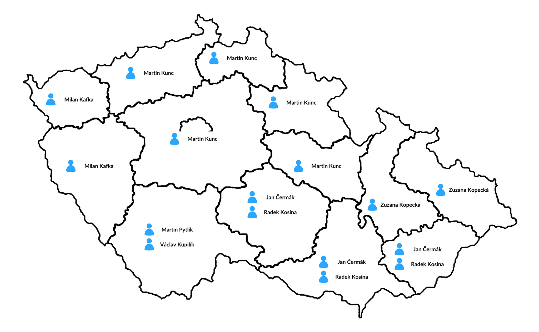 Poskytujeme obchodní zastoupení ve všech krajích ČR a také na Slovensku, což nám umožňuje efektivně reagovat na potřeby zákazníků ve všech regionech. Ať už jste kdekoli, naši obchodníci jsou připraveni vám nabídnout profesionální podporu, rychlé dodání a řešení na míru, abychom vždy vyhověli potřebám svých zákazníků.